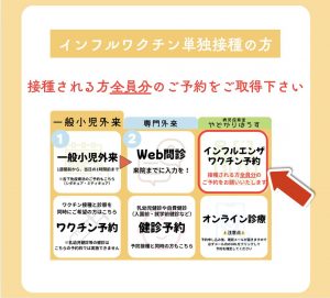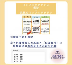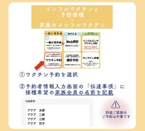 予防接種と健診の予約枠に限り、家族のインフル予約は取得不要です